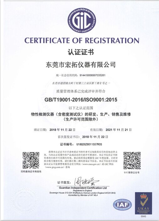 宏拓儀器通過ISO9001:2015質(zhì)量體系管理認(rèn)證,通過國家計(jì)量測試中心全面質(zhì)量與性能檢測,獲得國家計(jì)量器具型式批準(zhǔn)CPA證書,參與起草制定: 【GB/T 1040.1-2025塑料 拉伸性能的測定】、【GB/T 1634.1-2025塑料 負(fù)荷變形溫度的測定】、【GB/T 44559.1-2024塑料 硬質(zhì)塑料沖孔性能的測定】 、【GBT 43139-2023鑄造鋁合金液減壓凝固試樣密度檢測】......等標(biāo)準(zhǔn)。